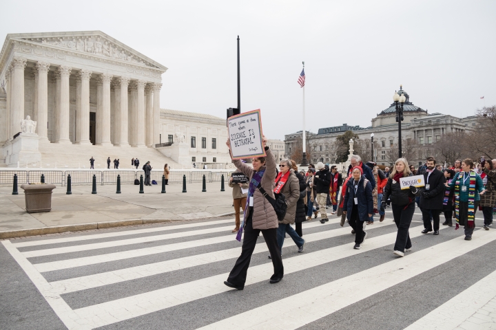 Following the church service, leaders from across the connection led the way as clergy and lay people from across the denomination marched and sang “Walking in the Light of God.” The sound of their singing and the truthfulness of their public witness echoed through the streets as they marched from Capitol Hill UMC, past the Capitol Building and the Supreme Court, to Upper Senate Park, where the public witness continued.