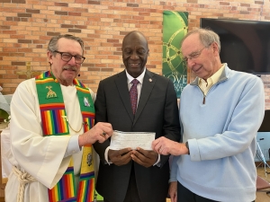 Beginning this year, Auburn UMC will sponsor one student at Africa University (AU) each year through a fully endowed scholarship. The church will not select the recipient; instead, AU will choose the student annually based on its own criteria. The endowment is funded through the Starbucks Foundation—unrelated to the coffee company—which awarded Auburn UMC money to use not for church operations, ministry shares, or salaries, but solely to “pay it forward” in meaningful ways. AU’s Director of Endowment, Dr. James Salley, visited Auburn UMC during Sunday worship on February 15 to receive the endowment scholarship.