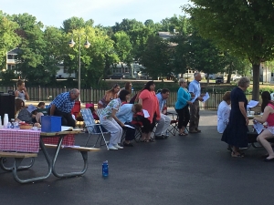 The July 24th service ends with Amazing Grace and the attendees gather together to share delicious pastries and coffee.