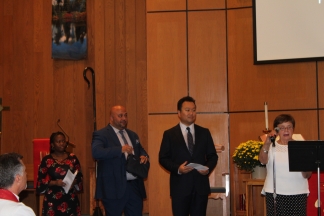 Rev. Rosa-Laguer values cross-cultural relationships as was evident in the reading of Psalm 95: 1-3 In four different languages at his installation service. Diane Thurlow read the scripture in English. Christopher Kim read the passage in Korean. Benjamin Matta Jr. read the scripture in Spanish, and Sekuye Bolende read the verses in Swahili.
