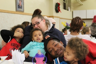 John Seals, a 28-year-old, has been coming to the community meal for the past six weeks with his girlfriend Shannon and their three children (4-year-old Jayden, 3-year old Keshawn, and 1-year-old Destiny). They learned about the meal from John’s cousin Amber. John said, “I enjoy it so much every time I come here. Meals like this help us get to where we need to be to support our kids.”